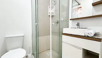 Os quartos têm controle de temperatura, bem como mini frigobar para sua conveniência. Banheiro separado e chuveiro são fornecidos no banheiro.